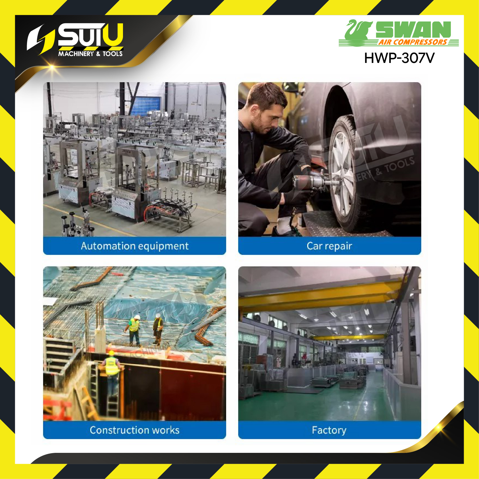 [PACKAGE] SWAN HWP-307V / HWP307V 300L 7.5HP 12BAR Belt Driven Air Compressor 5.5kW 850RPM