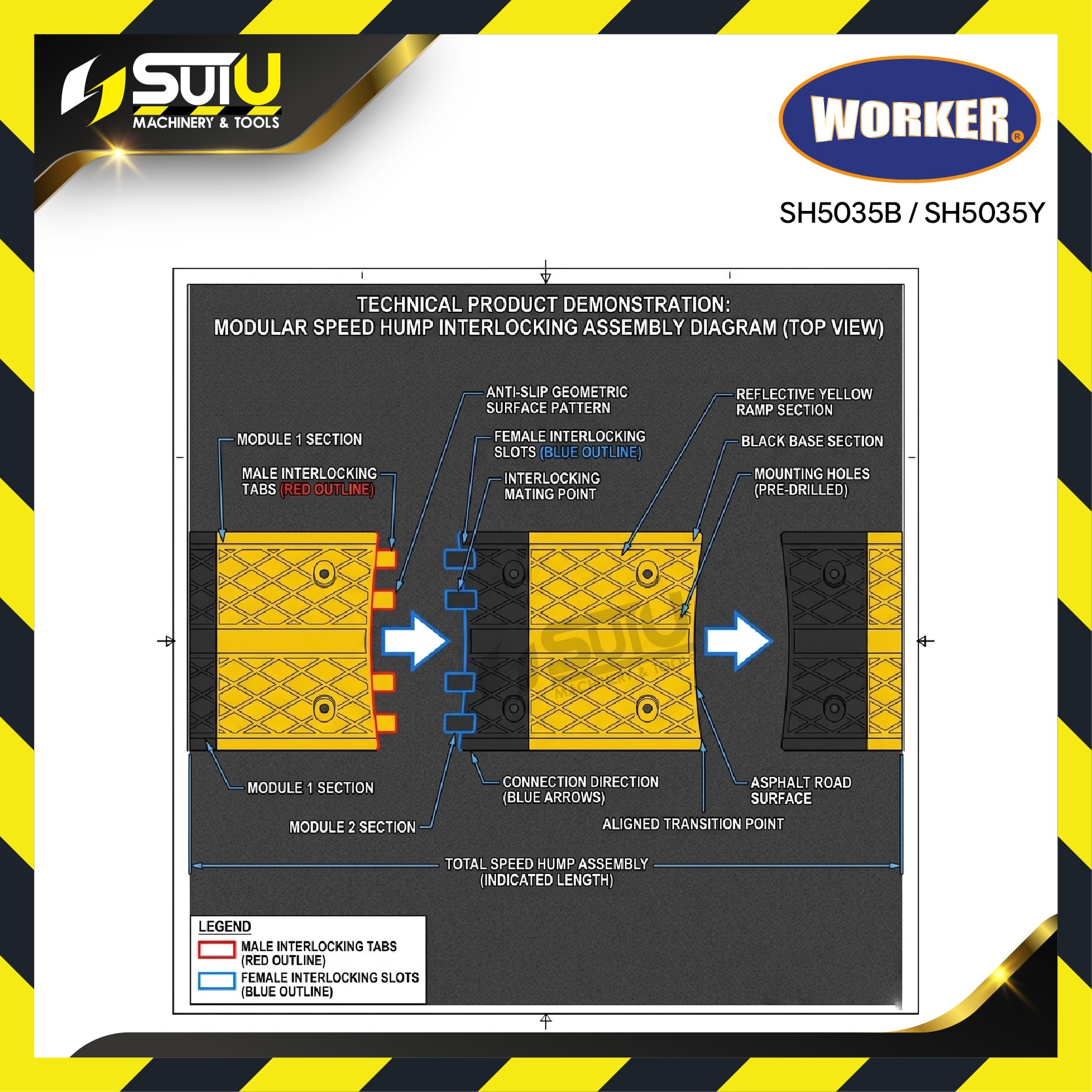 WORKER SH5035B / SH5035Y Speed Hump Body / Bonggol Jalan (Black / Yellow)